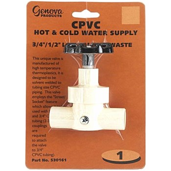 Genova Prod 530161 CPVC Hot & Cold Water Line Valve w/Waste ~ 3/4"-1/2"