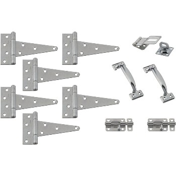 Includes 6 T-hinges, 2 barrel bolts, -
