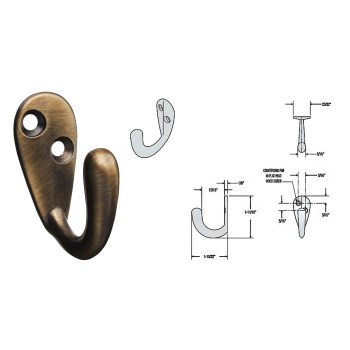Hillman 852904 Coat & Hat Hook, Antique Bronze Finish
